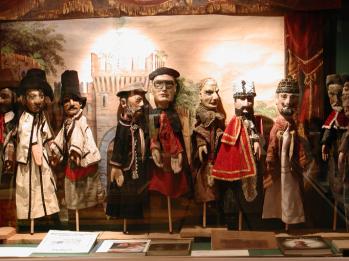 Burattini di Famiglia Preti di Modena e Famiglia Forni di Ferrara. Foto © Teatrino dell'Es - Foto della mostra effettuata a Palazzo Agostinelli a Bassano del Grappa - Anno 2003.